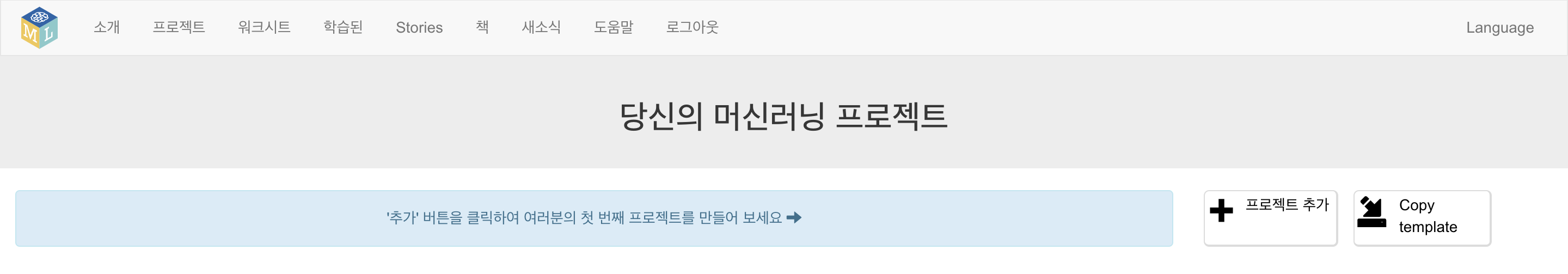 가장 먼저 머신러닝 프로젝트를 만들어야 한다. 우측에 있는 프로젝트 추가 버튼을 클릭한다.