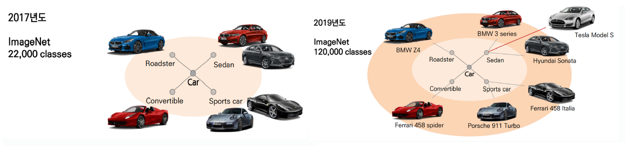 이 사진에서 보다시피 데이터는 연구의 방향이나 시장의 수요에 따라서 클래스가 분화된다. 클래스가 점차 분화되고 새로운 클래스가 등장함에 따라 새로운 데이터에 대해 지속적으로 학습할 수 있는 인공지능 모델이 필요해지게 된 것이다. 새로운 데이터가 나올 때마다 처음부터 다시 훈련시키는 것 보다는, 이미 학습된 모델에 새로운 데이터만 추가하는게 더 효율적이고 경제적이라고 할 수 있기 때문이다.